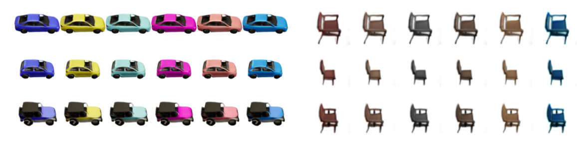 - 1번에서 사용한 Camera matrix, pose를 바꾸고 , 를 고정하면 한 scene에 대한 여러 방면의 이미지를 볼수 있음!