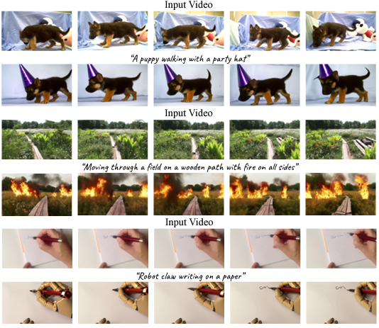 Given a video and a text prompt, Dreamix edits the video while maintaining fidelity to color, posture, object size and camera pose, resulting in a temporally consistent video.