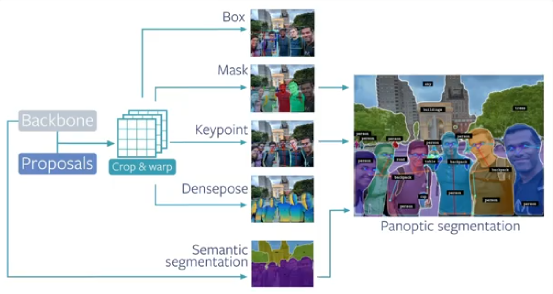 - panoptic 분할, Densepose, Cascade R-CNN, 회전 경계 상자, PointRend, DeepLab, ViTDet, MViTv2 등 기능을 포함합니다.